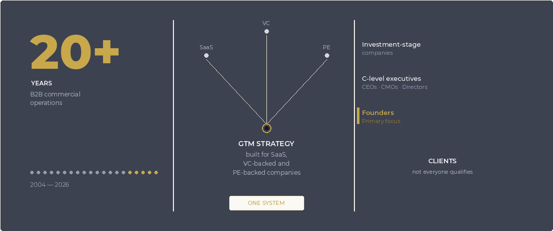 Entering a new market. Evaluating a commercial acquisition. Deciding whether your GTM architecture can support the round you're raising. These decisions require someone who has seen the data across enough companies to know what the numbers are actually telling you.